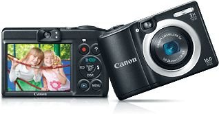 CANON PowerShot A1400 16.0-Megapixel Digital Camera: 5x optical/4x digital zoom; 2.7" color TFT-LCD; 720p HD video; DIGIC 4 image processor; PictBridge compatible
