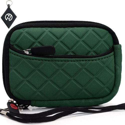 Quilted Neoprene Sleeve Case for Canon PowerShot A540 Digital Camera, With External Compartment Pocket. Color: Hunter Green + NuVur ™ Keychain (FGL2ZZ3G1)